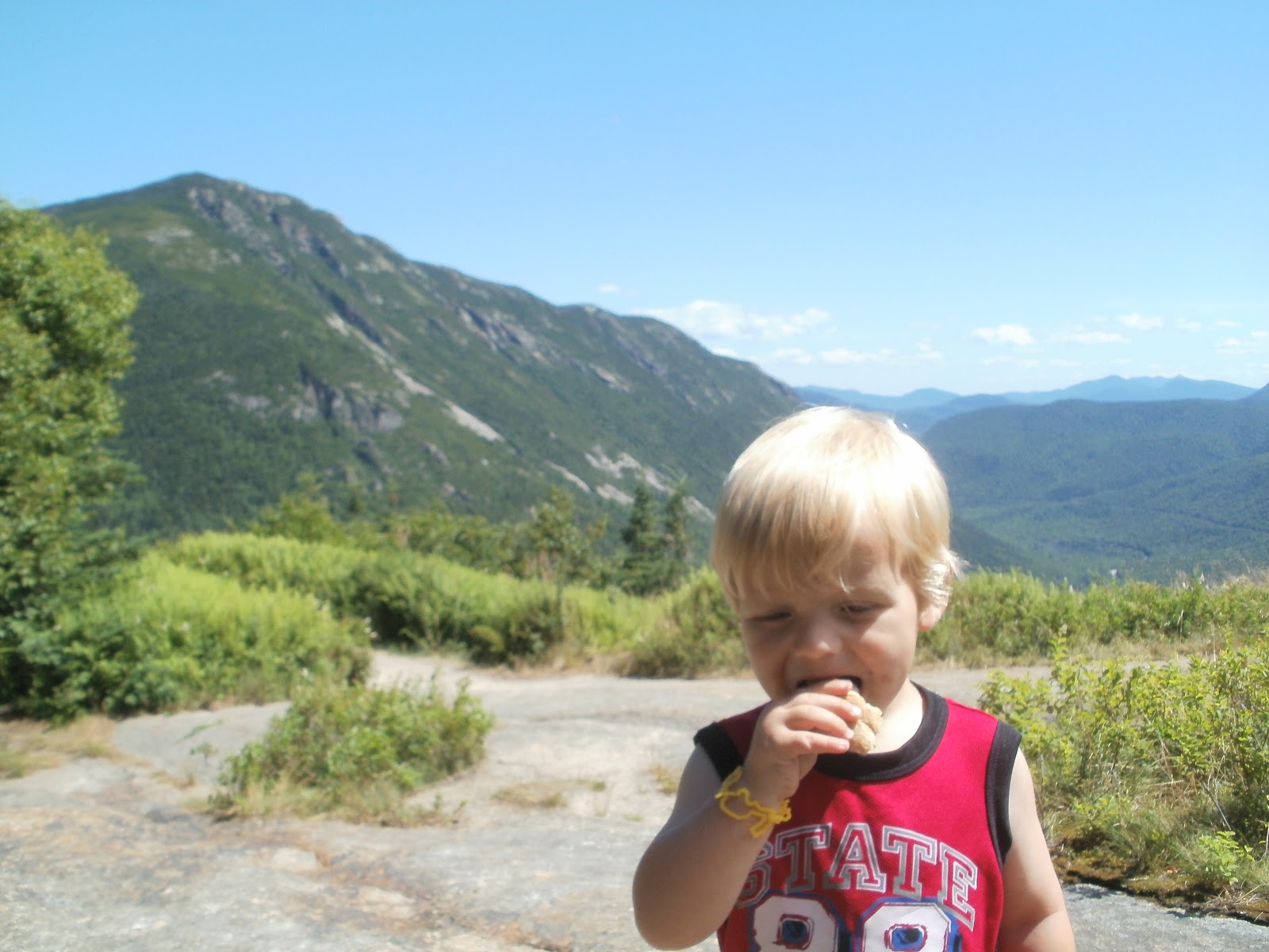 We stopped often on the way up as Alex kept wanting to take breaks and eat snacks so we did whenever he wanted to. I always took Ethan out and let him run around during the breaks and when we would start off he of course runs after his big brother and tries to keep up. Which is nice for me since an empty pack weighs far less than a pack with another person inside it! Ethan hiked on his own a fair amount on this trip as the trail is very wide and not that steep.